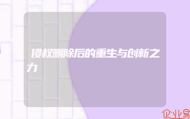 - 侵权删除后的重生与创新之力一、侵权删除的背景与挑战随着知识产权保护意识的加强,侵权问题日益受到重视。当知识产权受到侵犯,删除侵权内容成为了维护权益的重要一环。这不仅仅是对原创者权益的保护,也是对创新力的一种支持。在面临侵权问题的背景下,许多