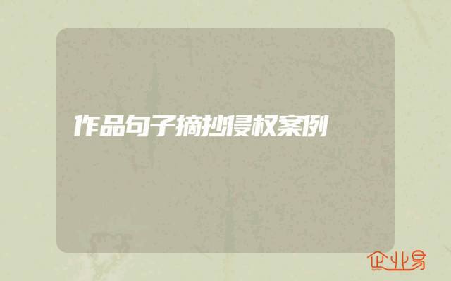 - 标题:作品句子摘抄侵权案例解析一、背景介绍随着知识产权保护意识的加强,越来越多的著作权侵权案例进入公众视野。其中,作品句子的摘抄侵权现象尤为突出。这类侵权行为不仅损害了原创作者的利益,也扰乱了文化市场的秩序。本文将结合具体案例,从不同角度对