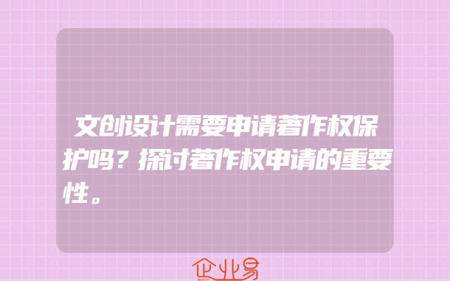 - 文创设计需要申请著作权保护吗?探讨著作权申请的重要性。