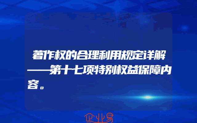 - 著作权的合理利用规定详解——第十七项特别权益保障内容。