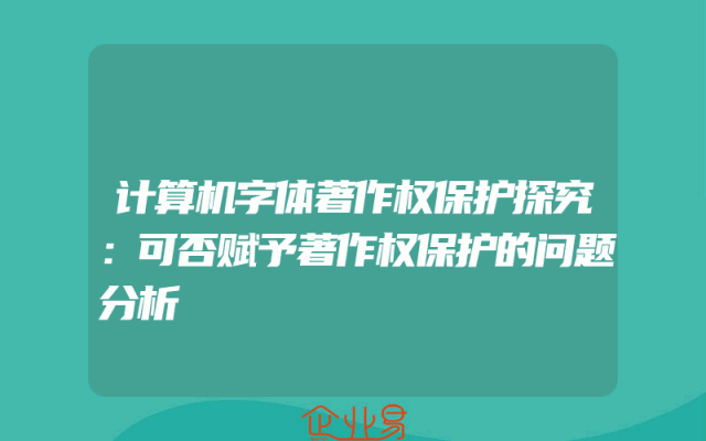 - 计算机字体著作权保护探究:可否赋予著作权保护的问题分析