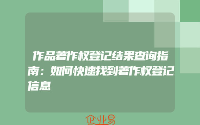 - 作品著作权登记结果查询指南:如何快速找到著作权登记信息