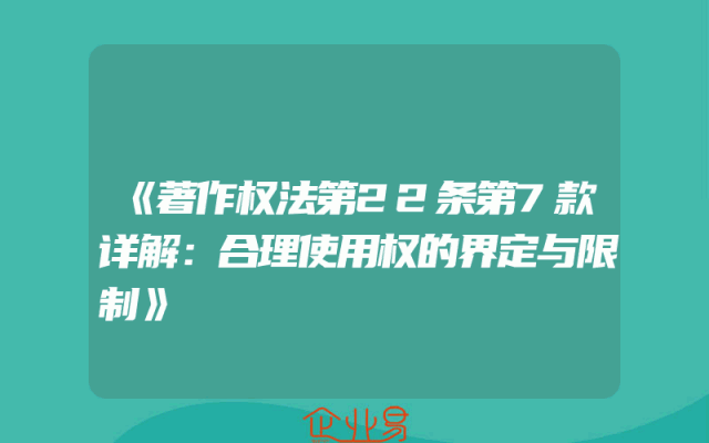 - 《著作权法第22条第7款详解:合理使用权的界定与限制》
