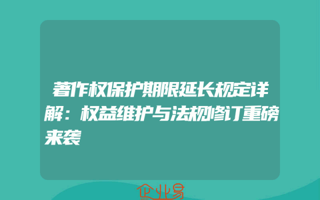 - 著作权保护期限延长规定详解:权益维护与法规修订重磅来袭