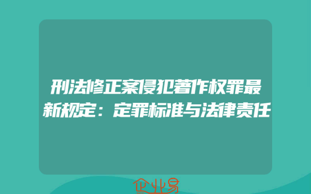 - 刑法修正案侵犯著作权罪最新规定:定罪标准与法律责任