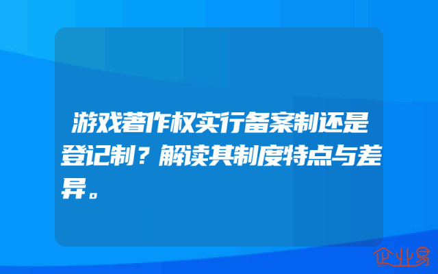 - 游戏著作权实行备案制还是登记制?解读其制度特点与差异。