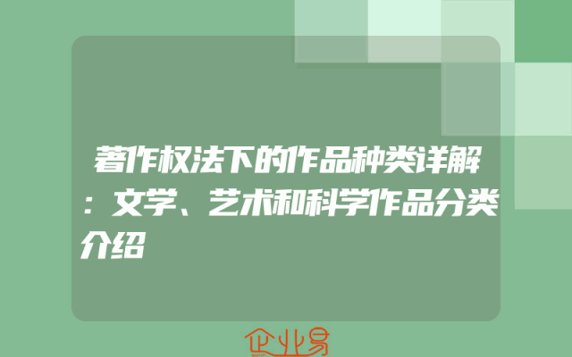 - 著作权法下的作品种类详解:文学、艺术和科学作品分类介绍