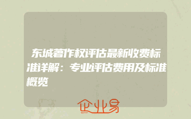 - 东城著作权评估最新收费标准详解:专业评估费用及标准概览