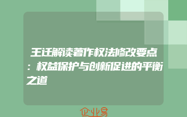 - 王迁解读著作权法修改要点:权益保护与创新促进的平衡之道