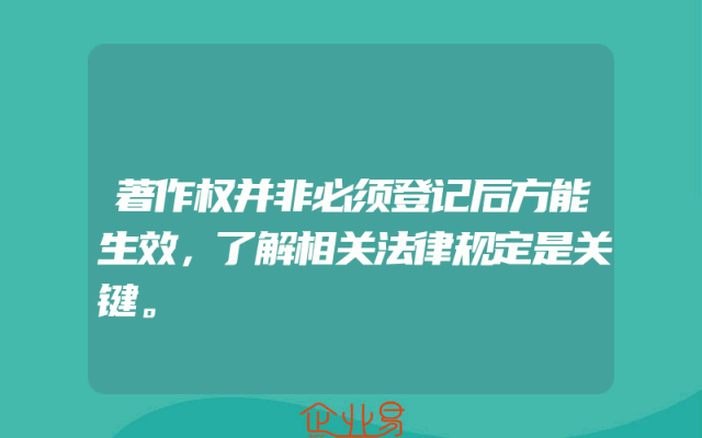 - 著作权并非必须登记后方能生效,了解相关法律规定是关键。