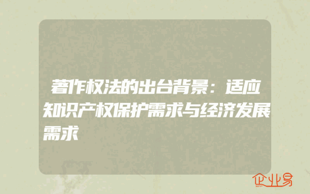 - 著作权法的出台背景:适应知识产权保护需求与经济发展需求