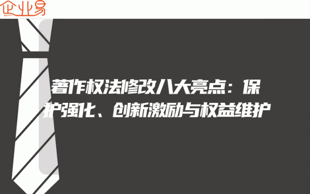 - 著作权法修改八大亮点:保护强化、创新激励与权益维护