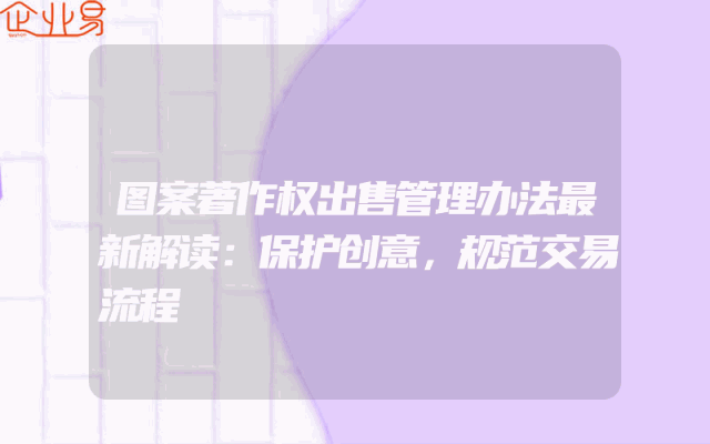 - 图案著作权出售管理办法最新解读:保护创意,规范交易流程