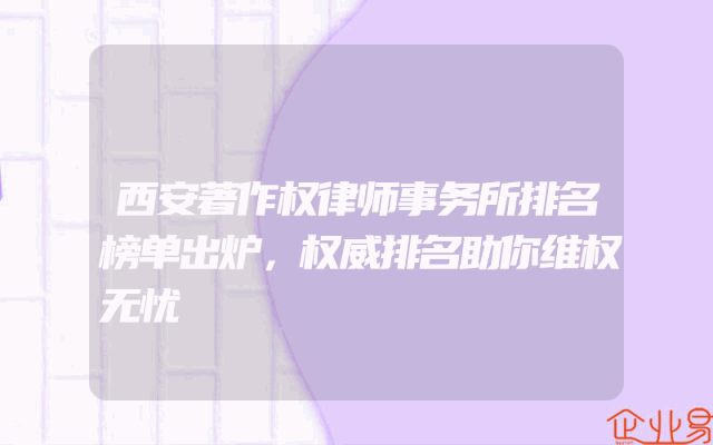 - 西安著作权律师事务所排名榜单出炉,权威排名助你维权无忧