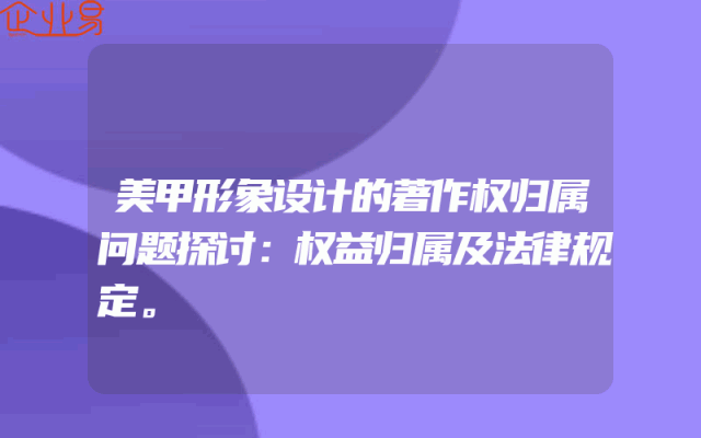 - 美甲形象设计的著作权归属问题探讨:权益归属及法律规定。
