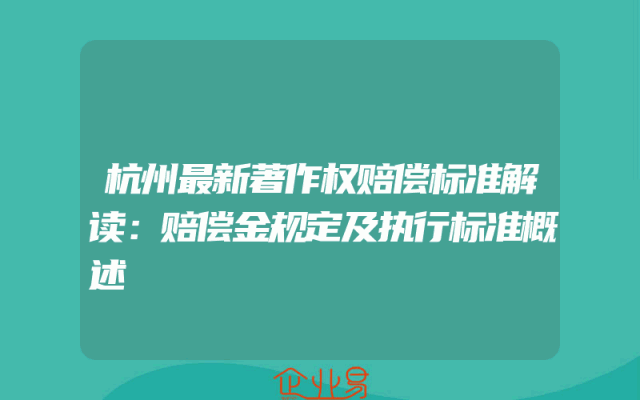 - 杭州最新著作权赔偿标准解读:赔偿金规定及执行标准概述