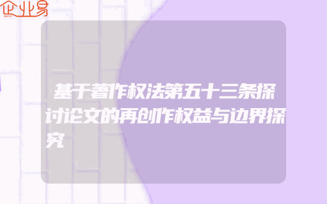 - 基于著作权法第五十三条探讨论文的再创作权益与边界探究