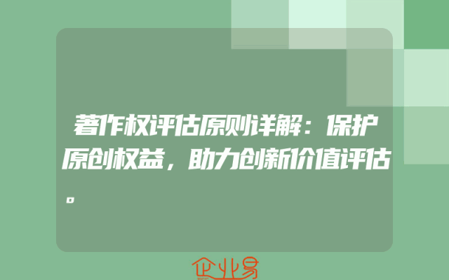 - 著作权评估原则详解:保护原创权益,助力创新价值评估。