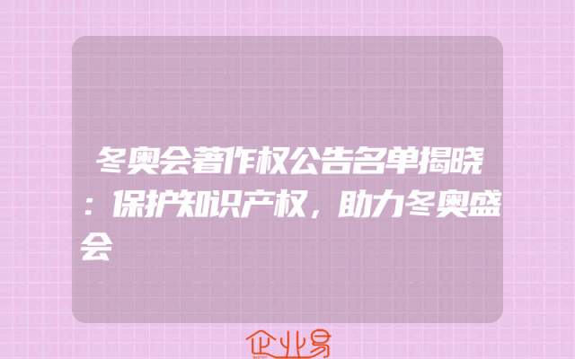 - 冬奥会著作权公告名单揭晓:保护知识产权,助力冬奥盛会