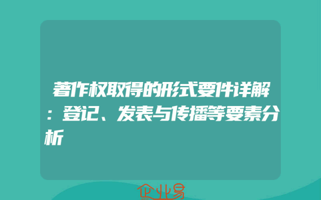 - 著作权取得的形式要件详解:登记、发表与传播等要素分析