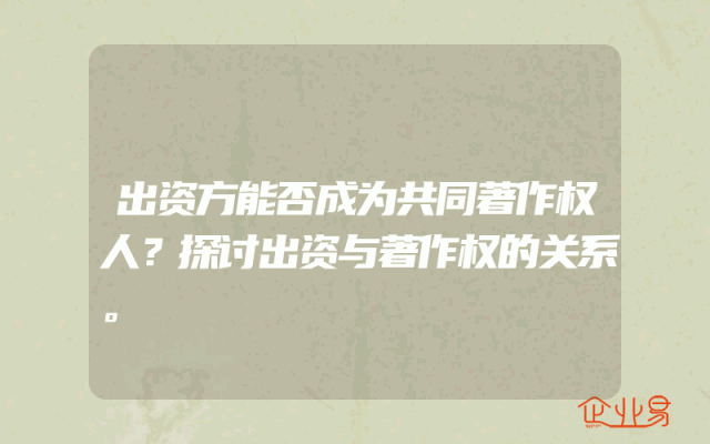- 出资方能否成为共同著作权人?探讨出资与著作权的关系。