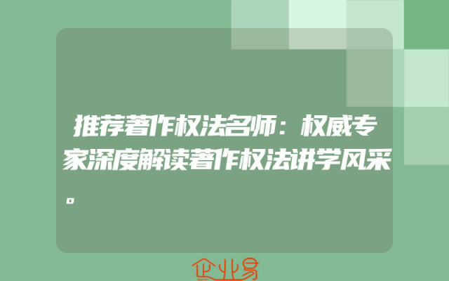- 推荐著作权法名师:权威专家深度解读著作权法讲学风采。