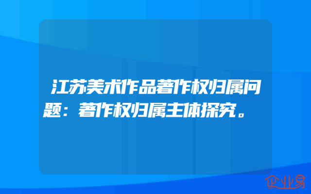 - 江苏美术作品著作权归属问题:著作权归属主体探究。