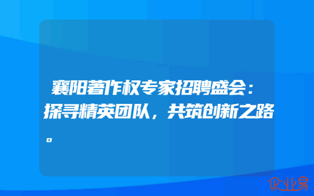 - 襄阳著作权专家招聘盛会:探寻精英团队,共筑创新之路。