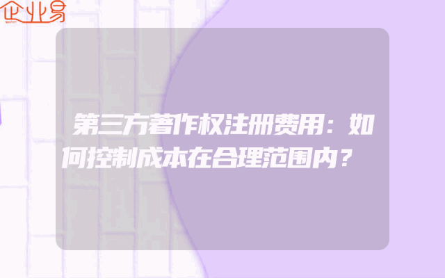 - 第三方著作权注册费用:如何控制成本在合理范围内?