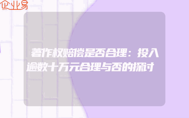 - 著作权赔偿是否合理:投入逾数十万元合理与否的探讨