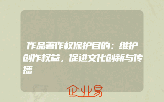 - 作品著作权保护目的:维护创作权益,促进文化创新与传播