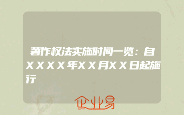 - 著作权法实施时间一览:自XXXX年XX月XX日起施行