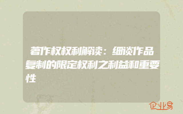 - 著作权权利解读:细谈作品复制的限定权利之利益和重要性