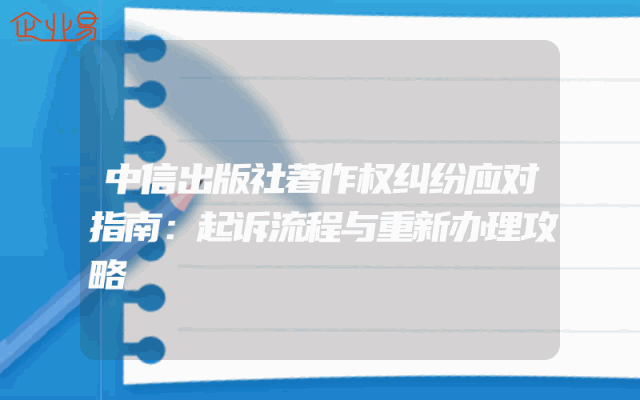 - 中信出版社著作权纠纷应对指南:起诉流程与重新办理攻略
