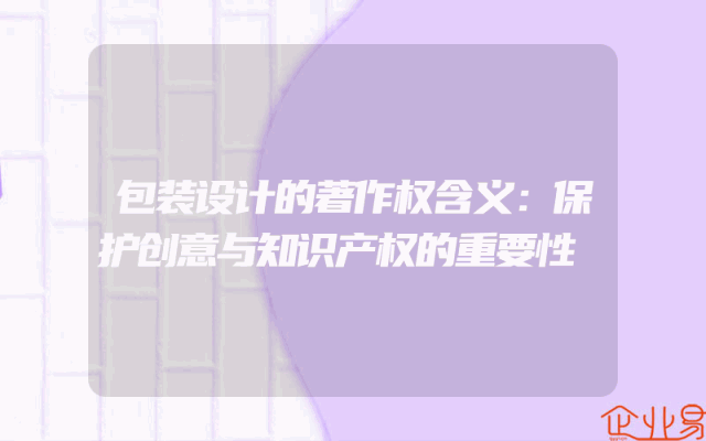 - 包装设计的著作权含义:保护创意与知识产权的重要性
