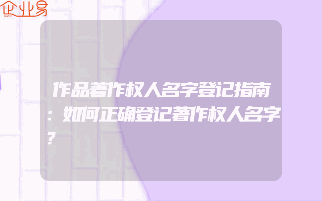 - 作品著作权人名字登记指南:如何正确登记著作权人名字?