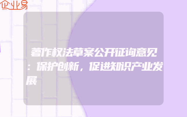 - 著作权法草案公开征询意见:保护创新,促进知识产业发展