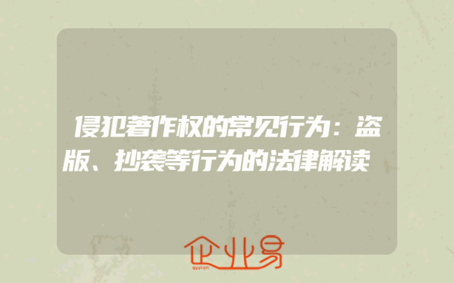 - 侵犯著作权的常见行为:盗版、抄袭等行为的法律解读