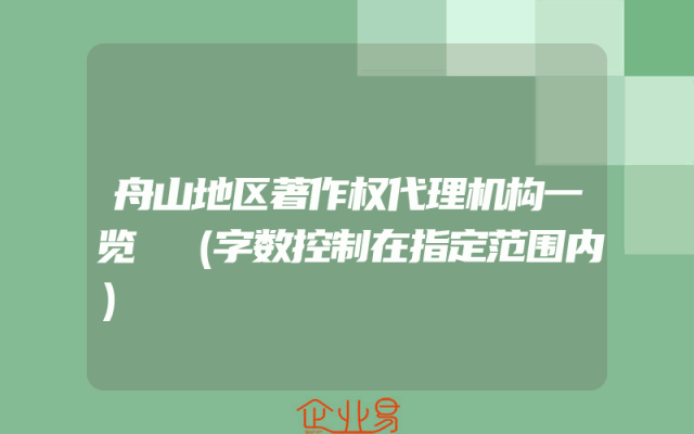 - 舟山地区著作权代理机构一览 (字数控制在指定范围内)