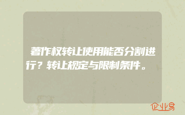 - 著作权转让使用能否分割进行?转让规定与限制条件。