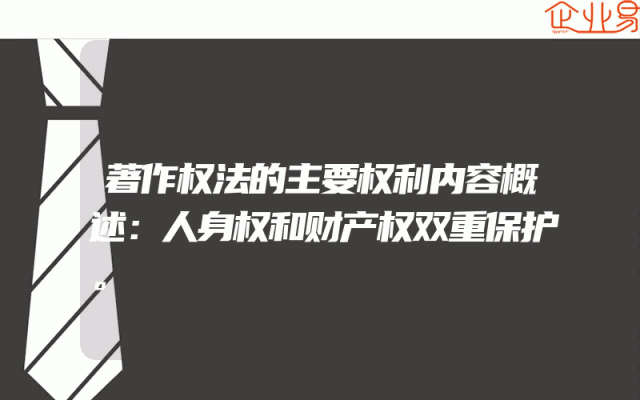 - 著作权法的主要权利内容概述:人身权和财产权双重保护。