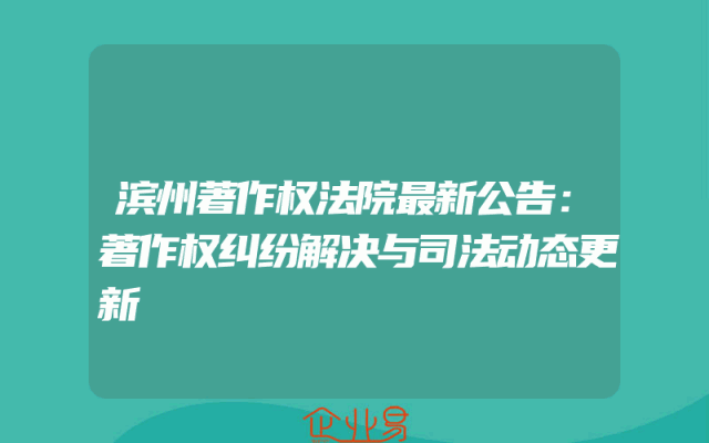 - 滨州著作权法院最新公告:著作权纠纷解决与司法动态更新