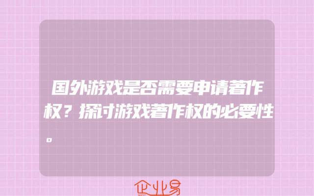 - 国外游戏是否需要申请著作权?探讨游戏著作权的必要性。