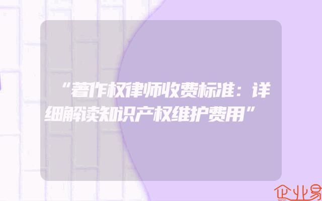 - “著作权律师收费标准:详细解读知识产权维护费用”