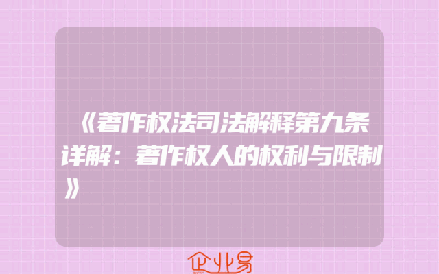 - 《著作权法司法解释第九条详解:著作权人的权利与限制》