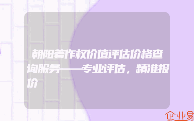 - 朝阳著作权价值评估价格查询服务——专业评估,精准报价