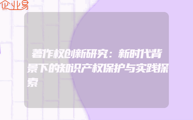 - 著作权创新研究:新时代背景下的知识产权保护与实践探索