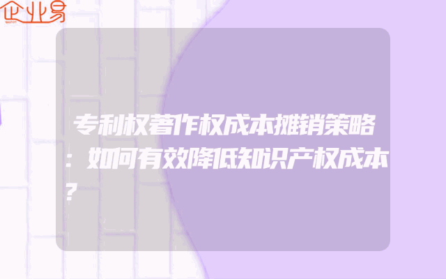 - 专利权著作权成本摊销策略:如何有效降低知识产权成本?