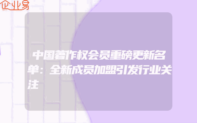 - 中国著作权会员重磅更新名单:全新成员加盟引发行业关注