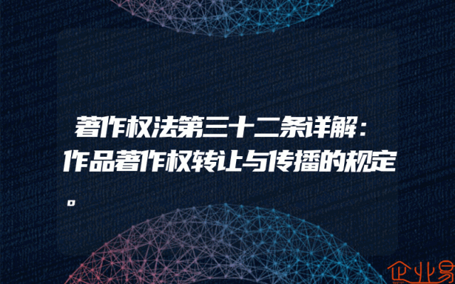 - 著作权法第三十二条详解:作品著作权转让与传播的规定。